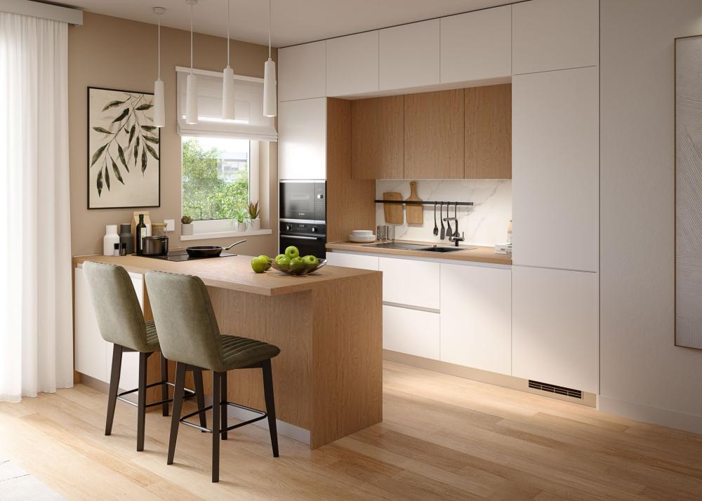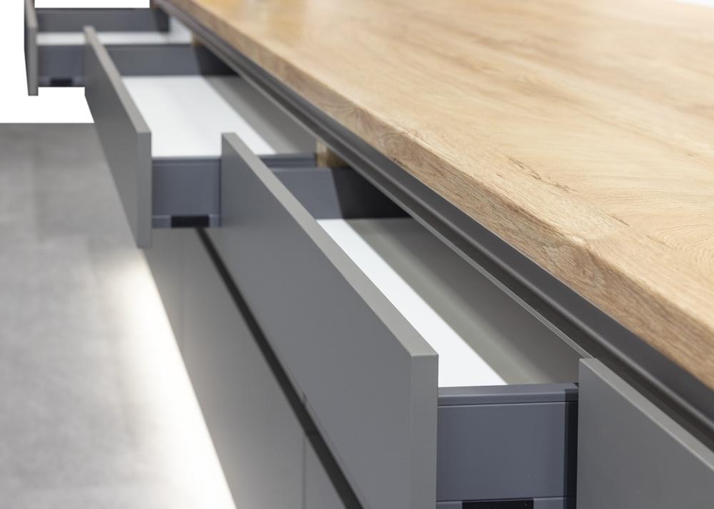 Kuhinja brez vidnih ročajev ne pomeni manj funkcionalnosti. Nasprotno – gre za pametno zasnovane rešitve, ki olajšajo uporabo.