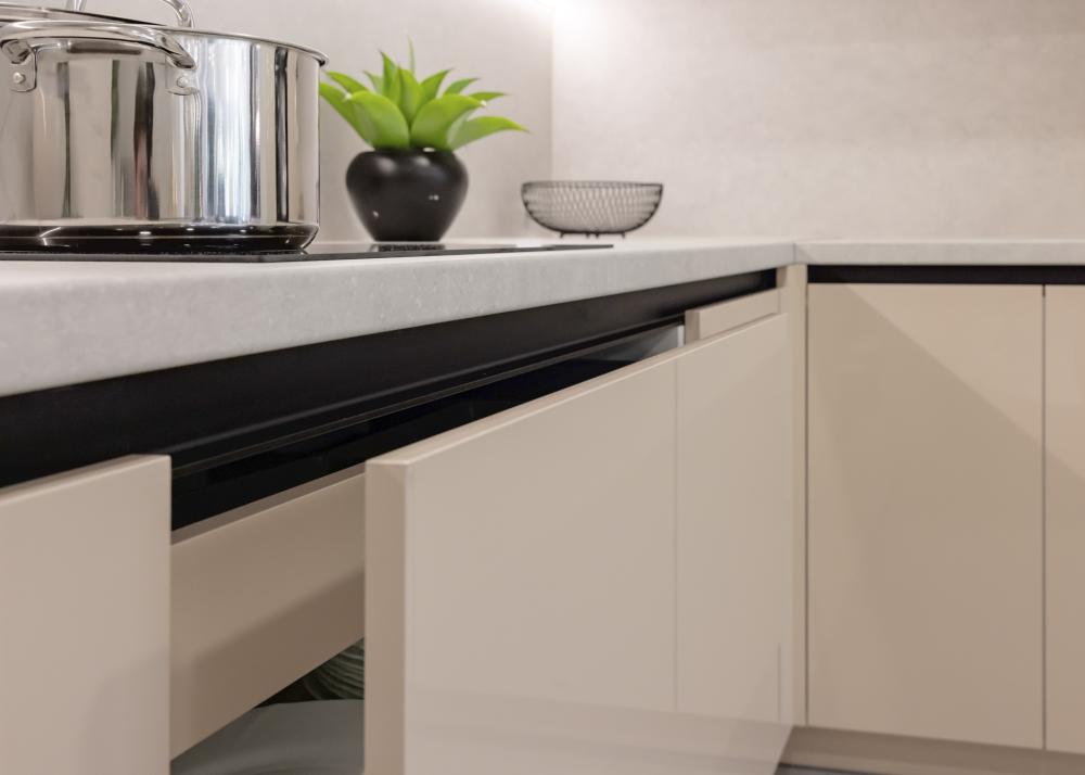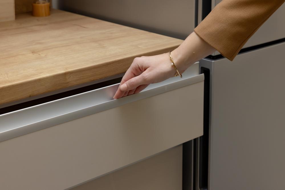 C-profil je danes najbolj priljubljena izbira za ljubitelje minimalizma. Gre za aluminijasti profil, vgrajen v element, ki omogoča odpiranje brez posega v fronto.