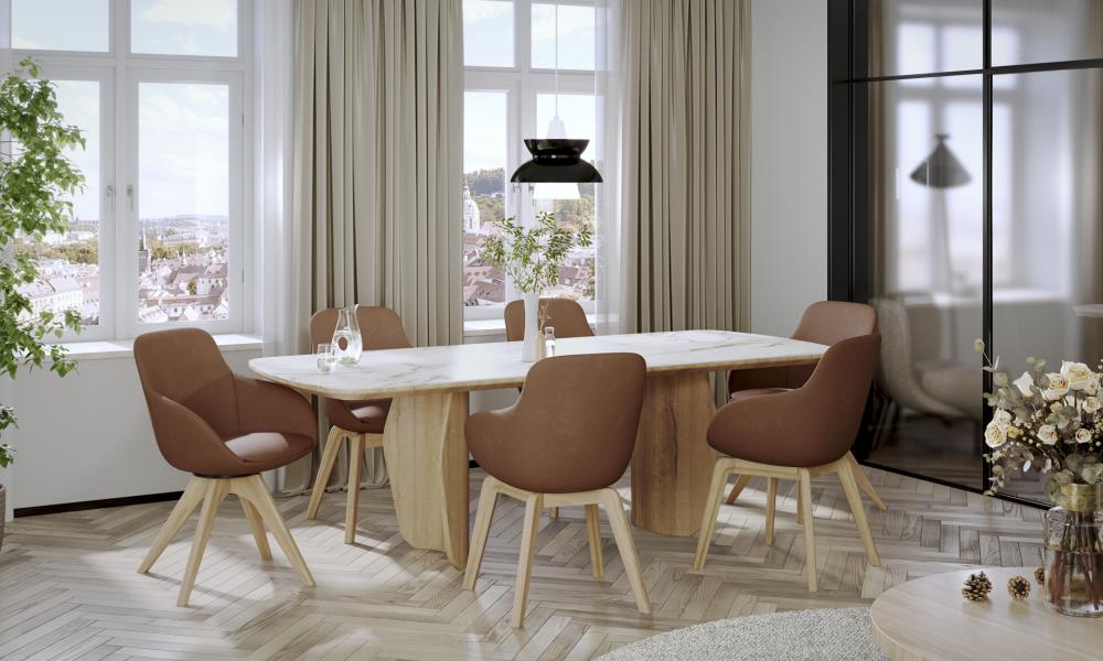 Prima, kot največji proizvajalec pohištva z lastno proizvodnjo in široko paleto slogov, ponuja kose, ki izjemno izstopajo v prostoru, oblikovanem v odtenkih Cloud Dancer.