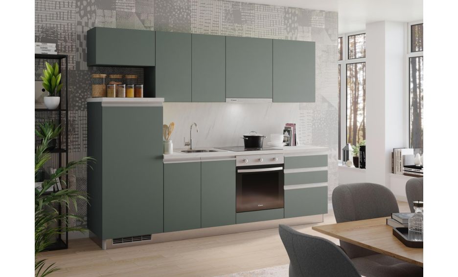 Blok kuhinja, Pia zeleno/zeleno/marmor/hladilnik L, 260 cm S6
