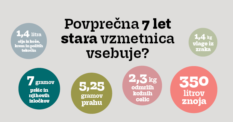 Po 7 letih uporabe, oziroma več kot 17.500 urah spanja, je vzmetnica za 11 % težja kot ob nakupu – zaradi vsega, kar se v njej nabere. Zato je treba vzmetnico menjati vsakih 7 let!