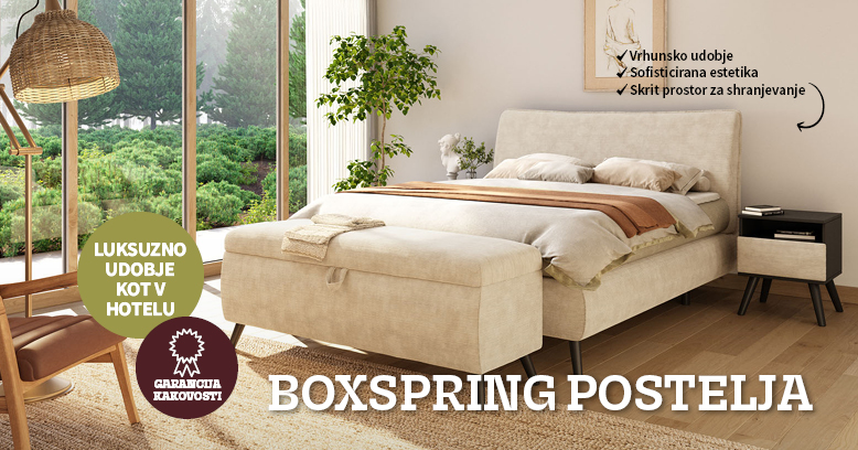 Boxspring postelja je sestavljena iz treh slojev: spodnje baze, ki služi kot prostor za shranjevanje, fiksne vzmetne osnove z Bonell jedrom ter vzmetnice, ki niso pritrjene na posteljo. Priljubljena je zaradi svoje višine, luksuznega videza in vrhunskega udobja. Večina modelov je opremljena z vzmetnico. Zakaj izbrati boxspring posteljo?