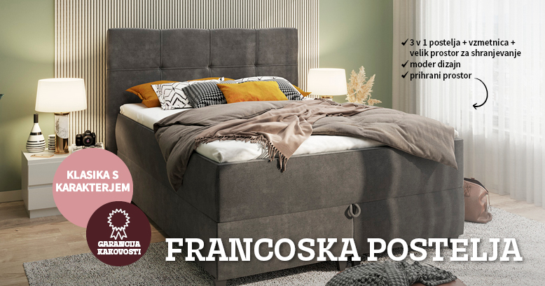 Vsaka francoska postelja ima vzmetnico, ki je že integrirana v posteljo, pod njo pa je velik prostor za shranjevanje. Jedro vzmetnice francoskih postelj je večinoma Bonell jedro, znano po trpežnosti in zračnosti. Največja prednost francoskih postelj je njihova večnamenskost – v enem dobite udobno posteljo in prostor za shranjevanje, ki je vreden manjše omare.