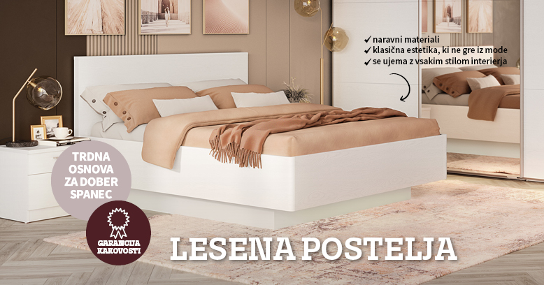 Lesena postelja ima trdno konstrukcijo iz masivnega lesa, MDF ali iverala, in jo je mogoče kombinirati z različnimi vrstami letvic in vzmetnic.