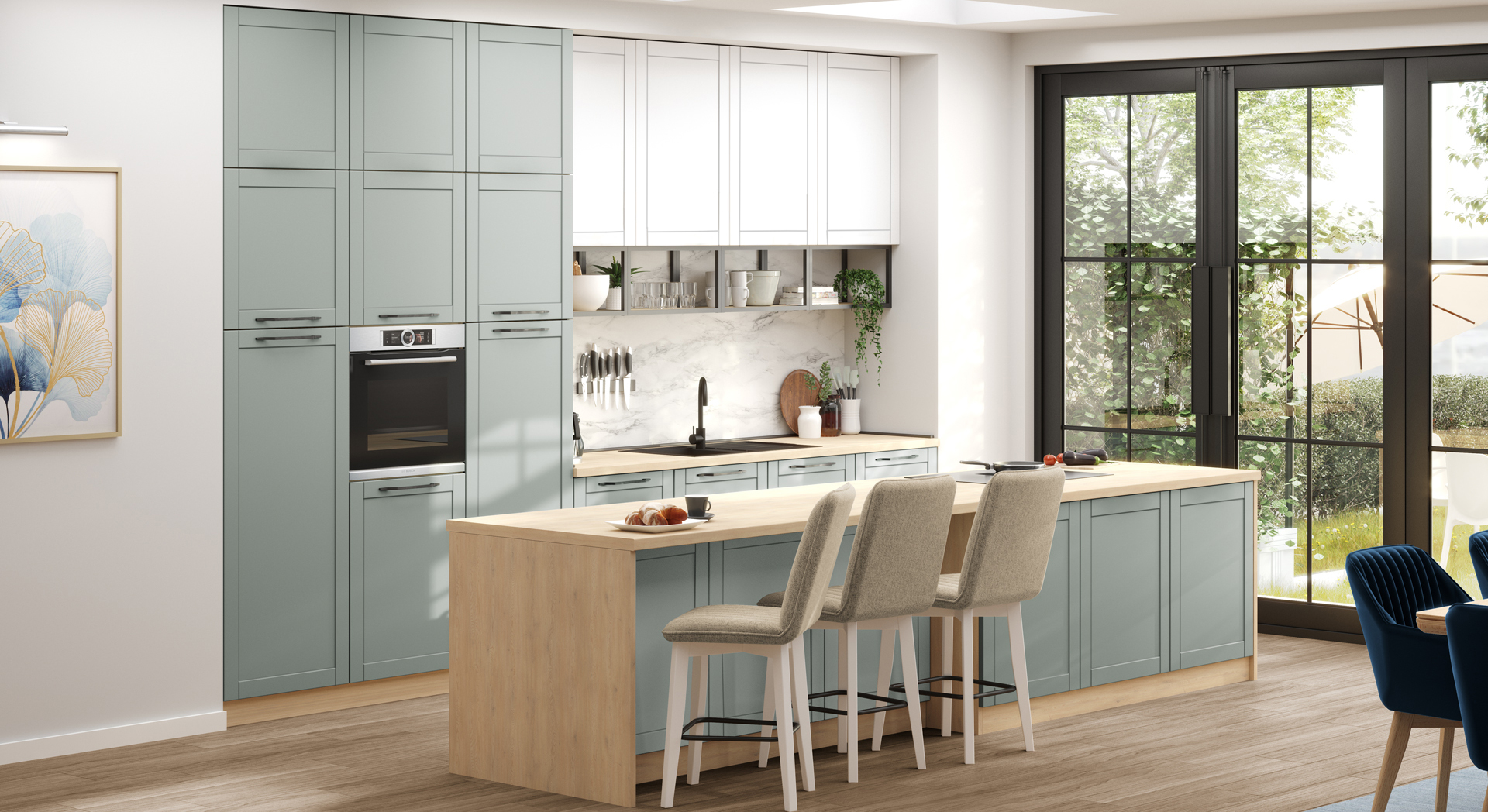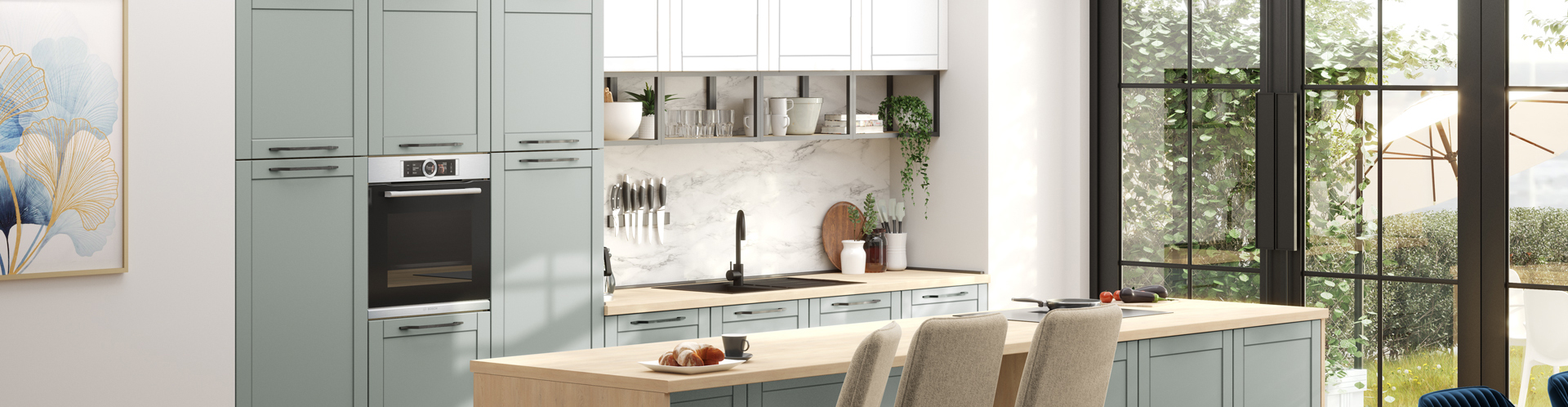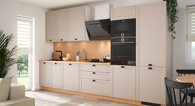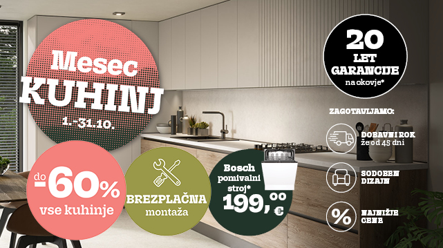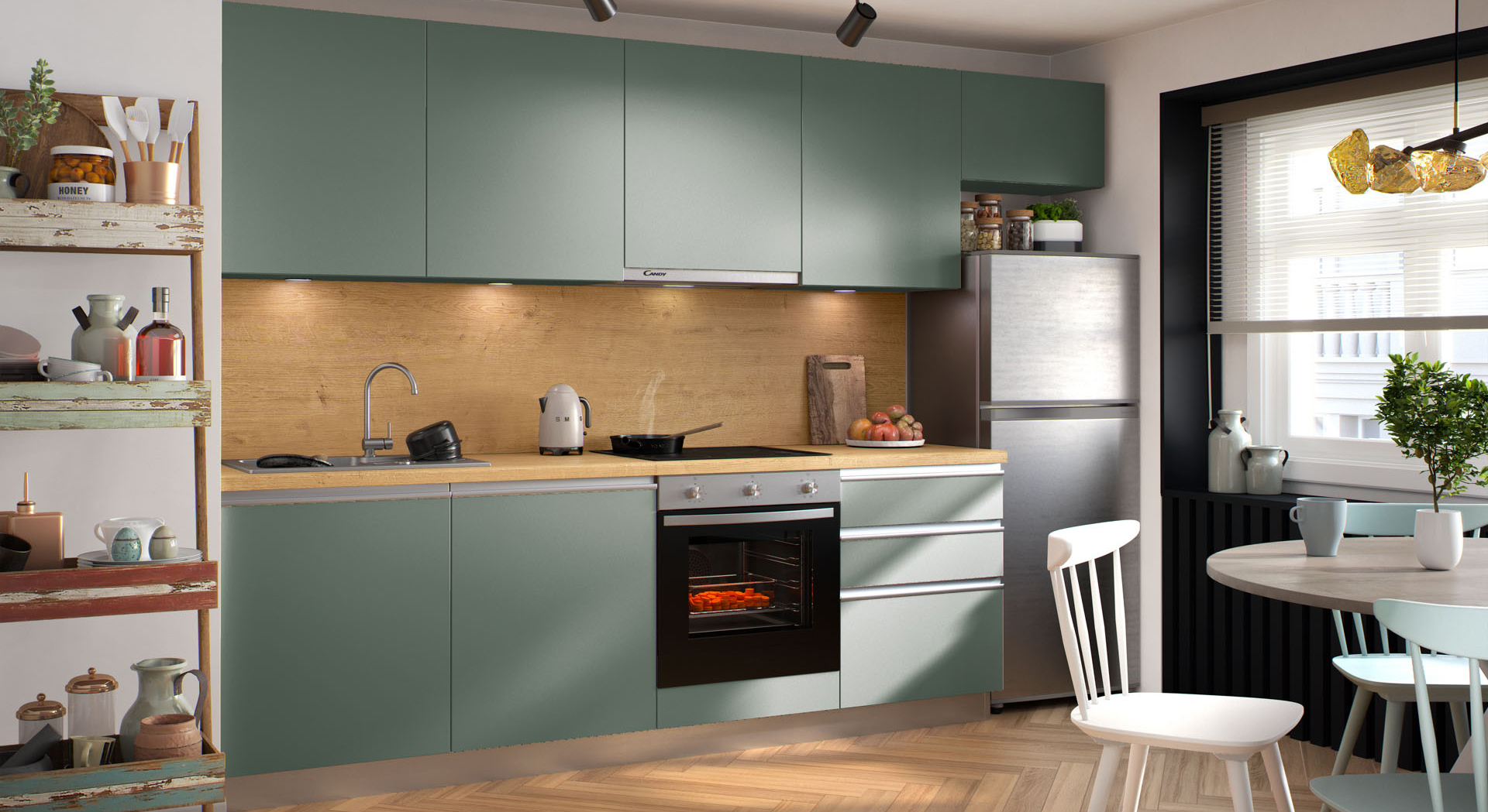 Izbirajte in kombinirajte dimenzije in barve, prilagodite kuhinjo z ročaji, osvetlitvijo, belo tehniko … Naj bo kuhinja oblikovana po vašem okusu!