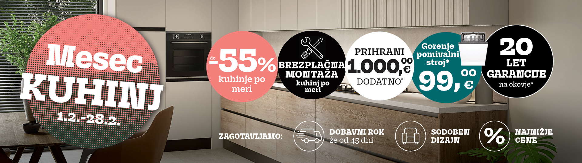 * Brezplačna montaža velja za vse kuhinje po meri.