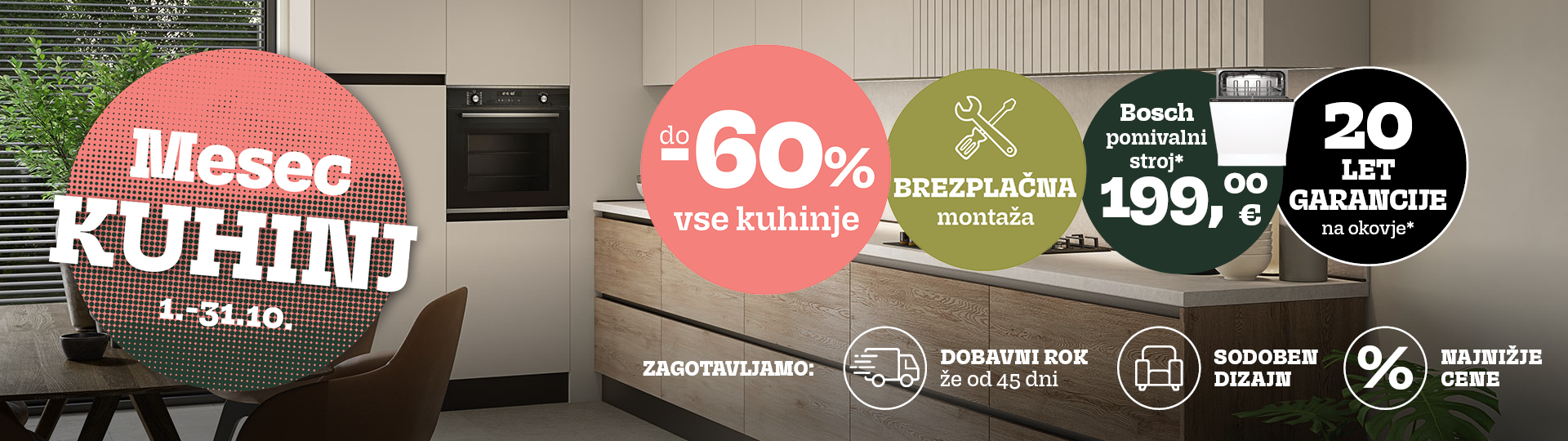 ** Besplatna montaža vrijedi za kupnju drvenog dijela kuhinje iznad 2.500 € s uključenim popustom, a za kuhinje po mjeri ispod 2.500 € montaža iznosi 250 €