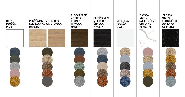 Oblazinjeni stoli vam omogočajo, da v prostor vnesete barve in teksturo. Tu je nekaj predlogov, kako jih uskladiti z različnimi dekorji plošče mize: