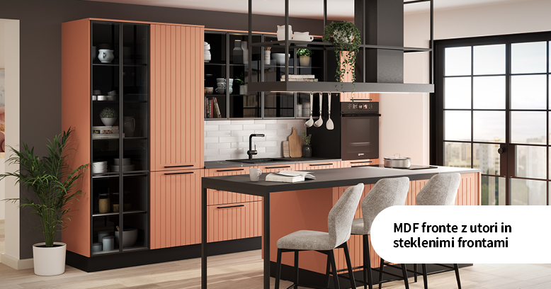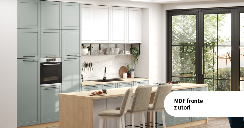 V skladu s trendi lahko izbirate tudi obliko MDF front. Fronte kuhinj Perla in Stela so na voljo v več izvedbah – gladke, z okvirjem ali z utori, vse oblike pa so na voljo v več barvah. Kuhinja Amelia, ki izžareva retro šarm, ima posebne MDF fronte z utori.