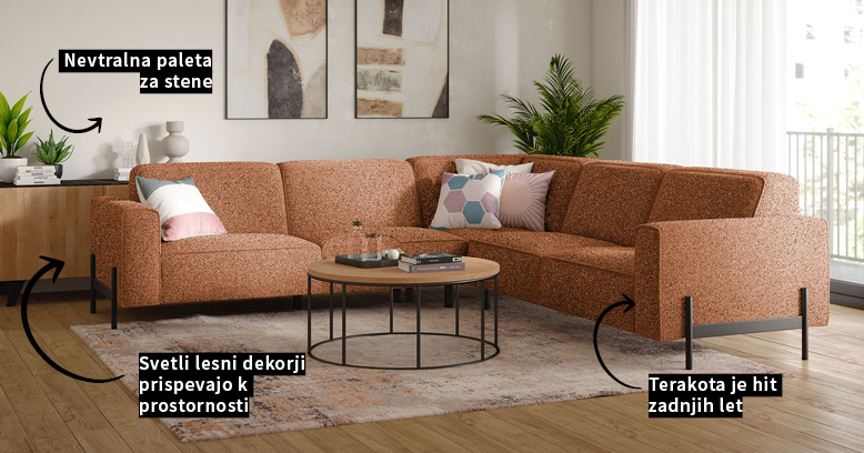Bež, toplo sivi, odtenki zelene in rjave ter drugi zemeljski toni so brezhibna izbira za dnevno sobo, saj ustvarjajo občutek topline in prostornosti. Nevtralne garniture se zlahka kombinirajo z različnimi slogi opreme, dodajanje tekstur, kot so pletene odeje ali blazine, pa ustvari večplastnost in globino prostora. Ti toni so tudi brezčasni, zato se svoje opreme ne boste hitro naveličali.