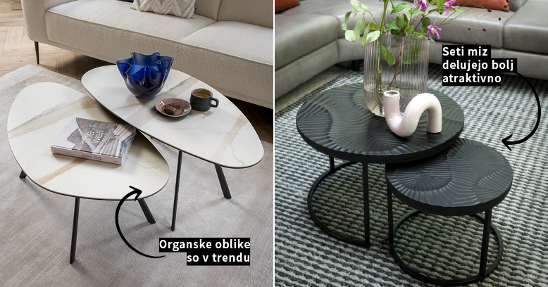 Priljubljeni so modeli s kombinacijo lesa in kovine ter večplastni seti miz, ki se lahko prilagajajo različnim situacijam.